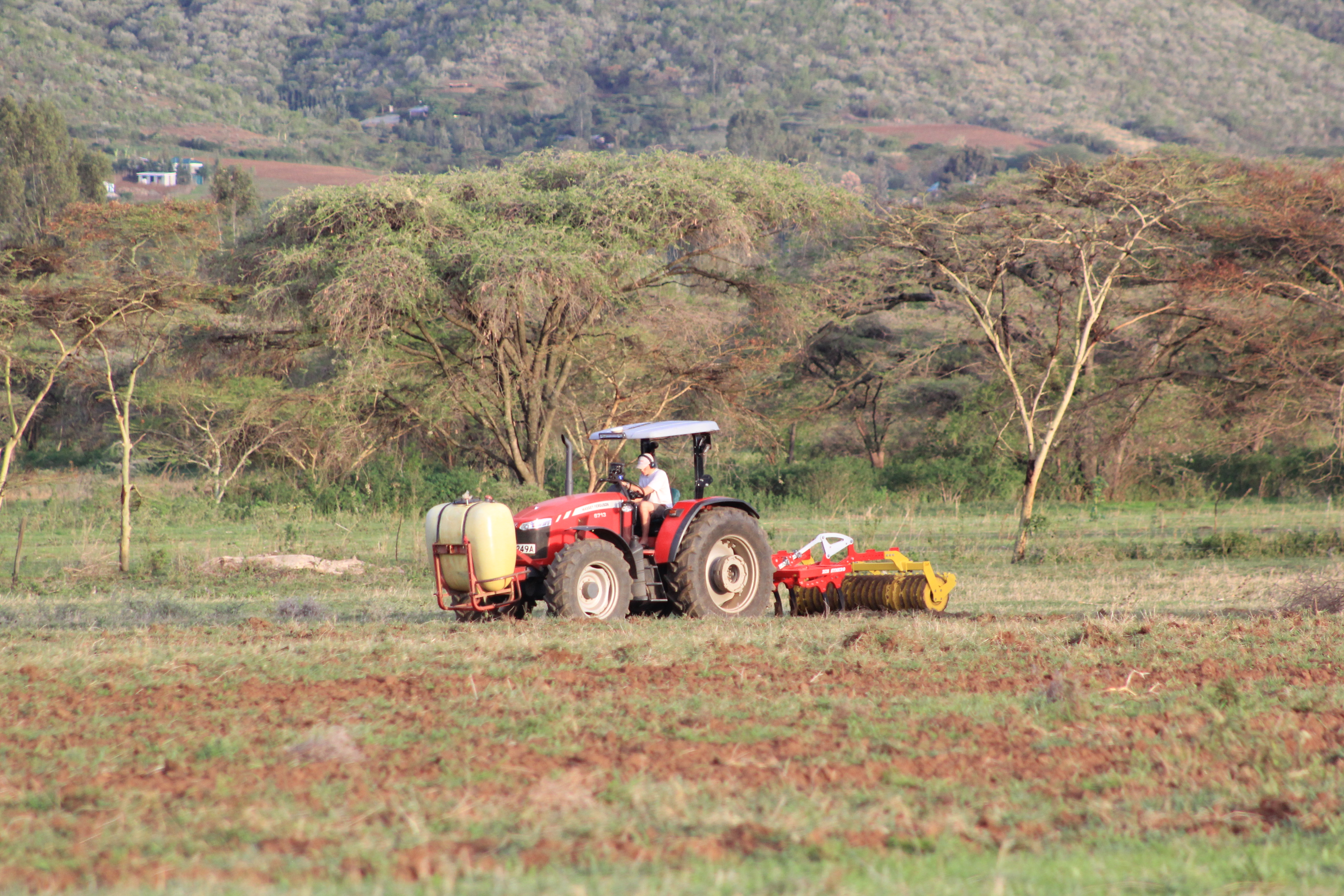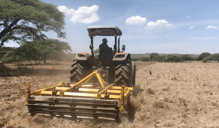 Harry doing some field preparation on a previous fallow grass field before planting beans.