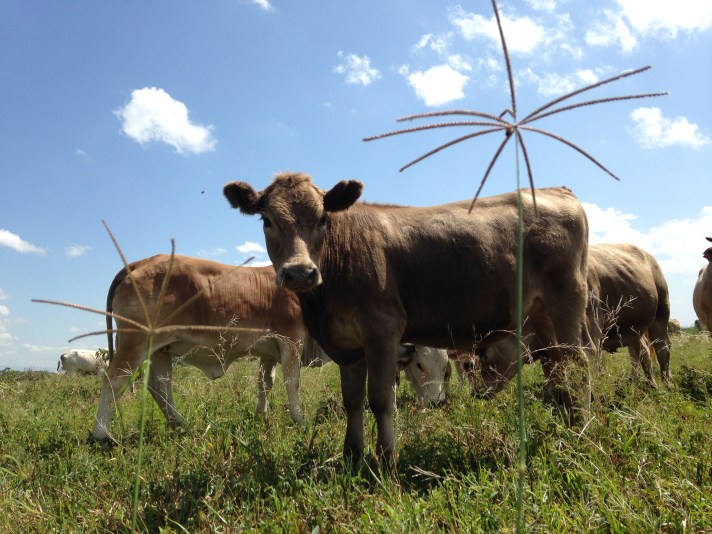 We have Boran, Charolais-Angus, Red Poll and Jersey cattle. Our grass fed cattle ensure we maximize the utilization of the entire farm.